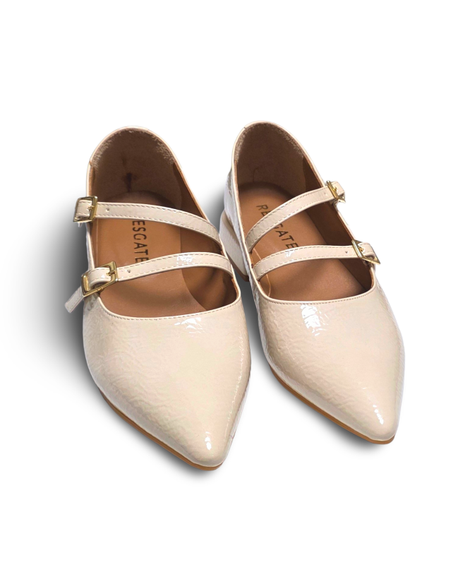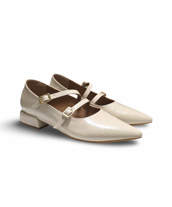 Sapato verniz com fivelas e bico fino